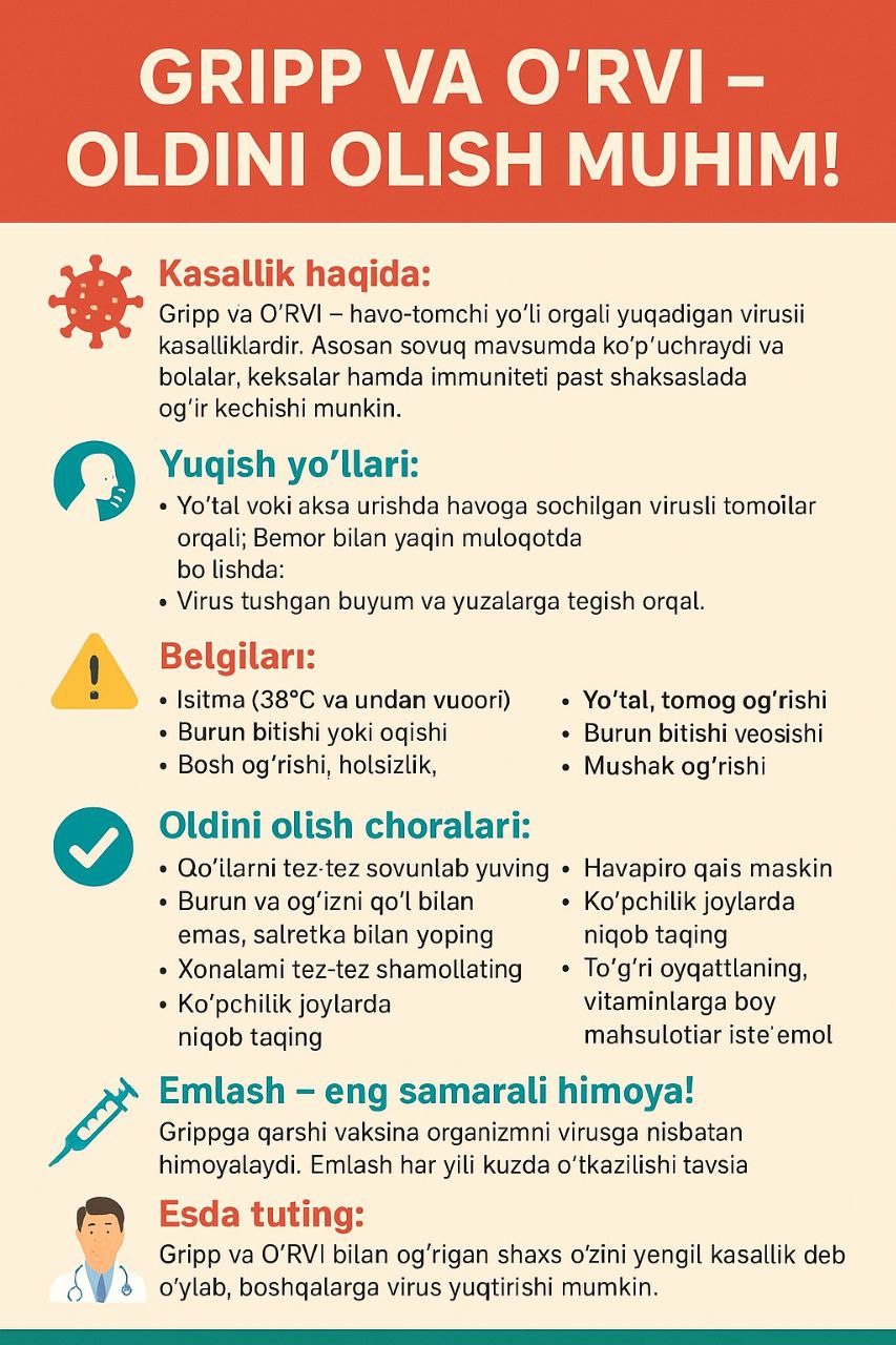 Gripp va O'RVI ni oldini olish muhim!