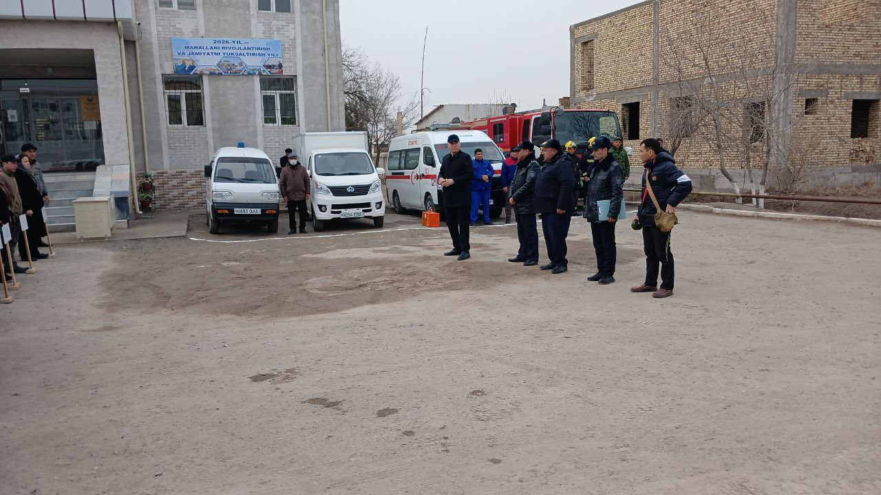 Shuningdek, fuqaro muhofazasi tuzilmalari va tuman FVDqT xizmatlari o‘rtasidagi o‘zaro hamkorlik, tezkor axborot almashinuvi hamda favqulodda vaziyat oqibatlarini qisqa muddatda bartaraf etish mexanizmlari sinovdan o‘tkazildi.