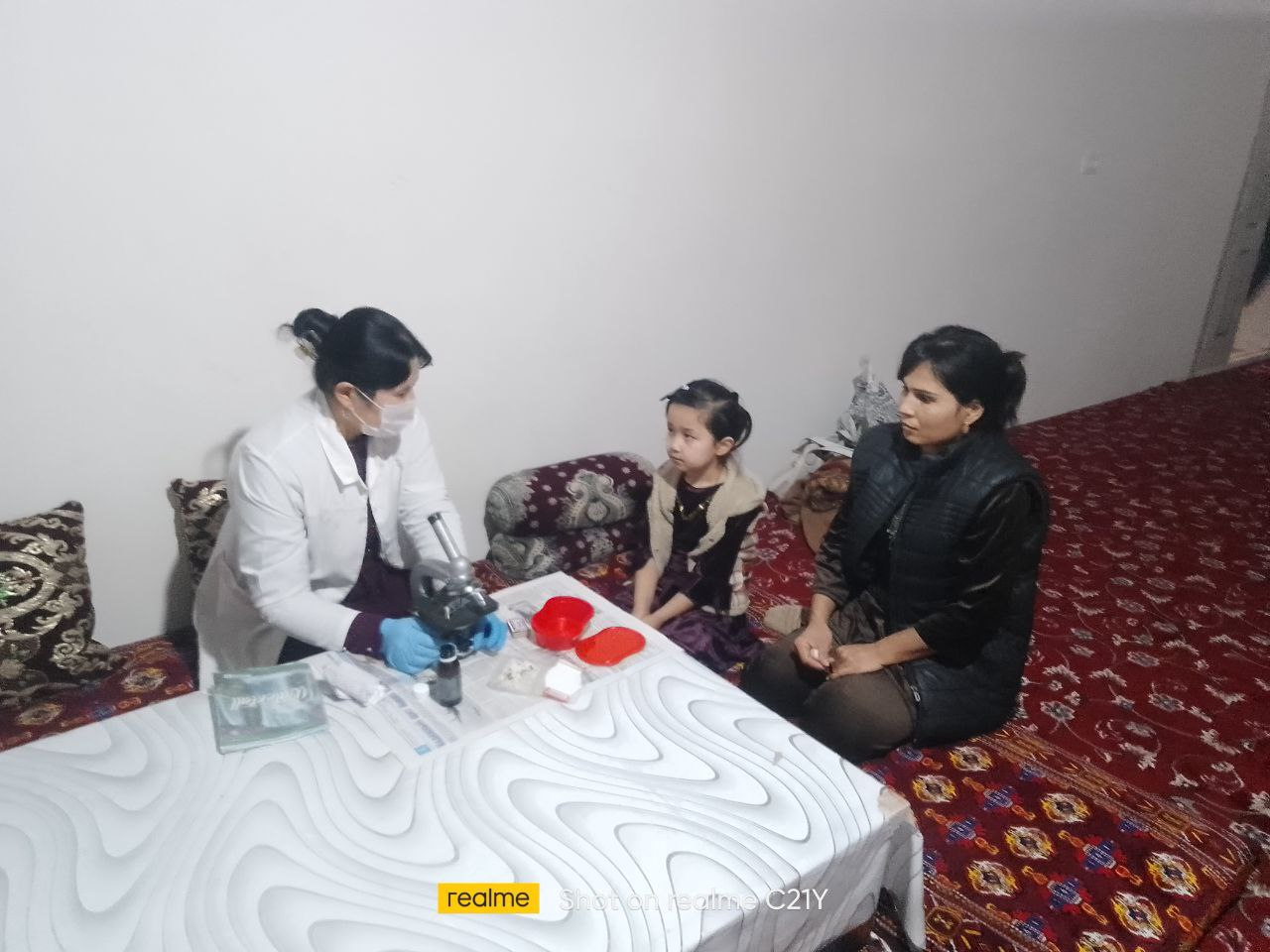 Mahalla hududidagi uyushmagan bolalar “soskov” usulida mikroskop yordamida gijja kasalligiga tekshirildi va xonadonlarda dezinfeksiya ishlari o'tkazildi.